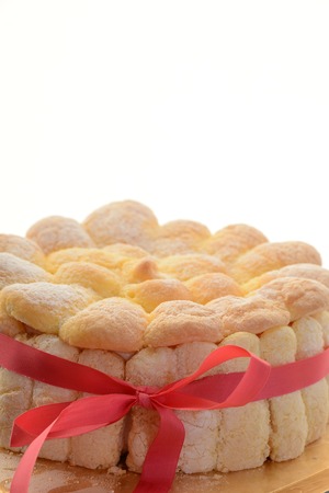 いちごのシャルロットです。いちごムースをフィンガービスケットの中につめてあり、食べ応え抜群です。